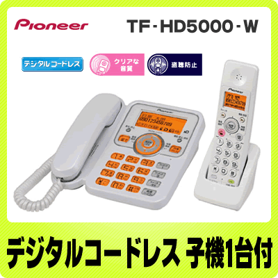 【在庫あり】パイオニア デジタルコードレス電話機(子機1台付) ホワイト TF-HD5000-W 【メーカー再生品】価格: 7,980円レビュー評価: 4.0 レビュー数:1 おしゃれな2.4GHz デジタルコードレス電話機 「TF-HD5000-W」 【こちらの商品はメーカー再生品です】 この商品はメーカー再生品となっております。再生品とは、地球環境と資源の保護に配慮し、展示再生品や開梱商品のうち再生可能なものについて、汚れの除去や本体ケース(筐体)その他一部の部品交換を行い検査の上再出荷されたものです。機能上問題はありませんが、部分的に傷があることがありますので予めご了承下さい。※通常のメーカー保証(1年間保証)はつきます。 ■商品の特徴 【快適通話サポート】 ○自動電波サポート機能: 通信状態を常に監視し、電波状態が悪くなったときにより良い通信に自動的に切替え |